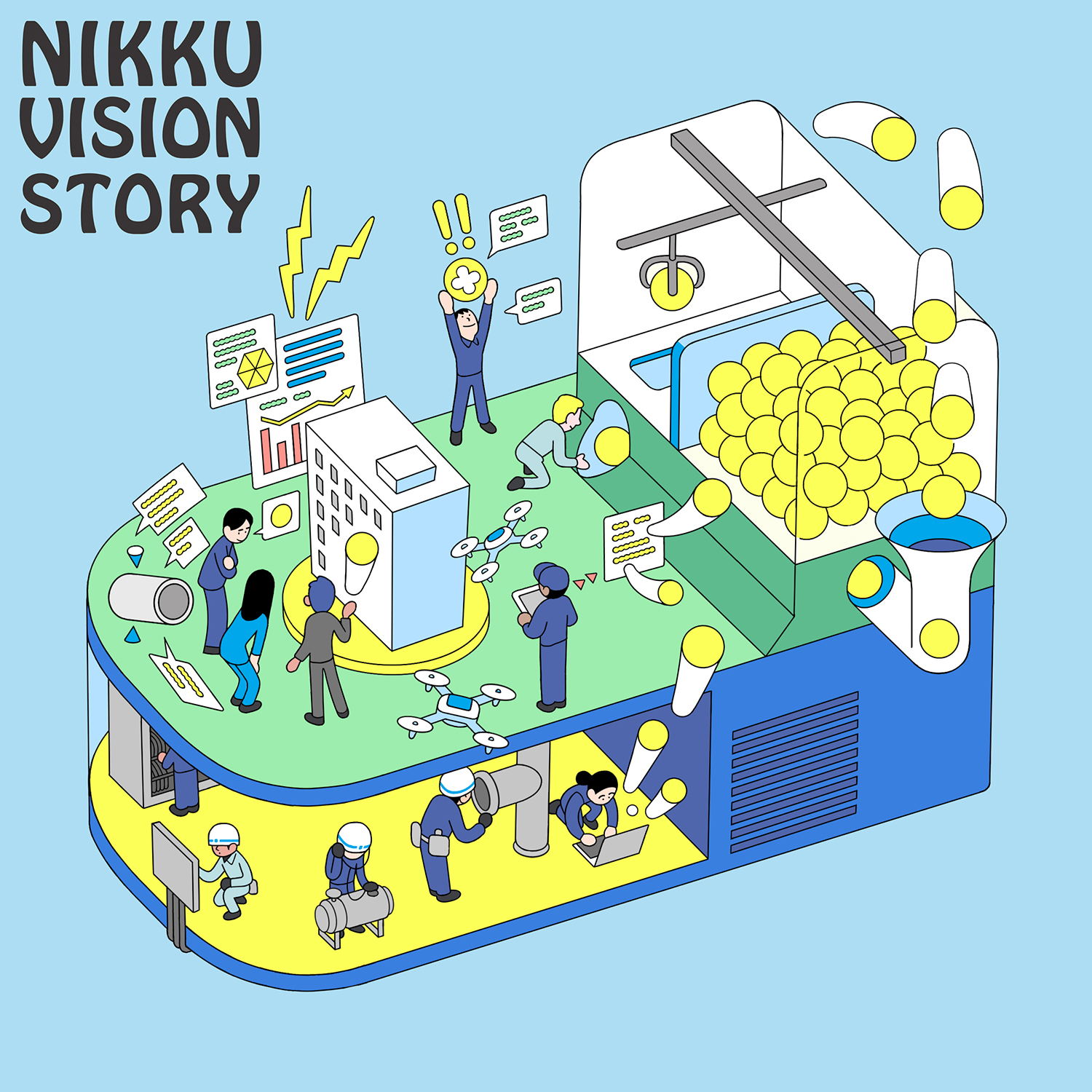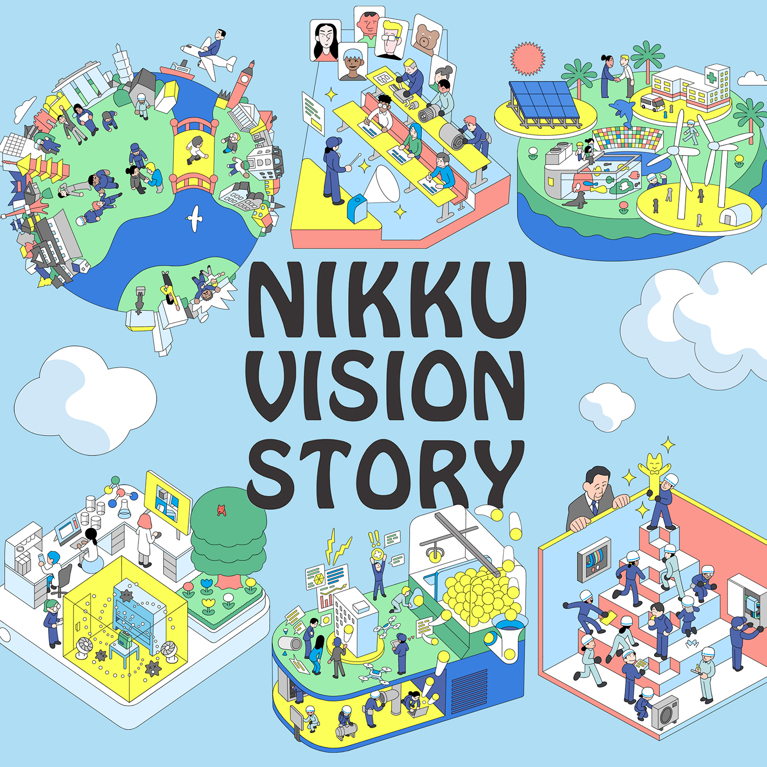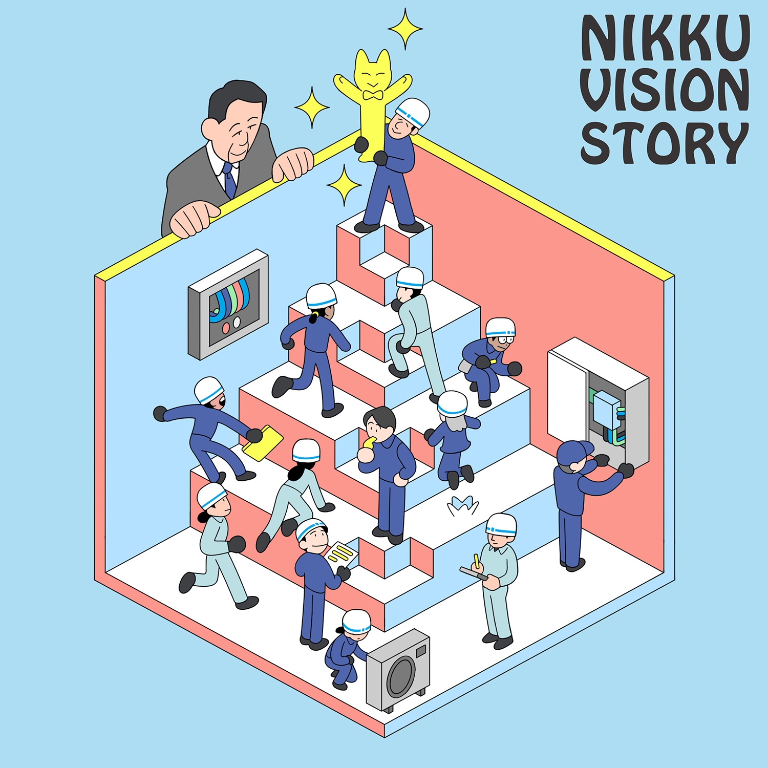 NIKKU VISION STORY . 建物と人と地球をつなぐ 日本空調グループの10年後の物語。 この世界で暮らす誰もが 快適に過ごせる空間を 維持するための 6つのエピソード のためのイラストを担当しました。 . 各エピソードはそれぞれ独立しつつ、1つの世界にもまとまるようなイメージのご依頼でした。